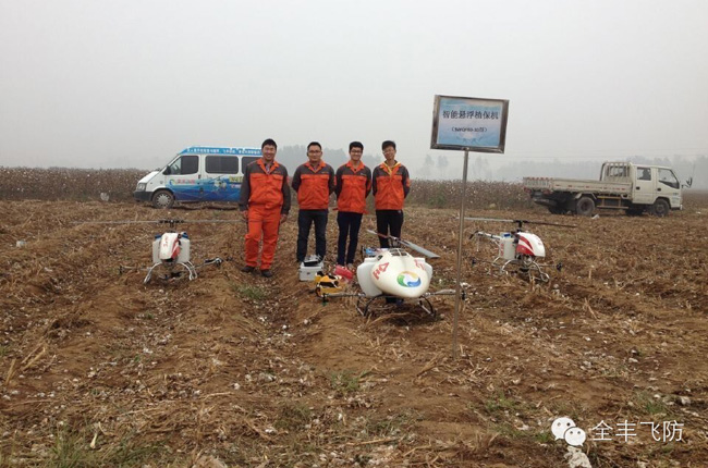 在棉花田里,自走式噴霧機(jī)、自走式旋耕機(jī)、大型棉花收采機(jī)、大型植保拖拉機(jī)及全豐航空植保農(nóng)用無(wú)人直升機(jī)齊上陣,實(shí)現(xiàn)對(duì)棉花從種到收的全程機(jī)械化作業(yè)。植保專家從作業(yè)速度、作業(yè)時(shí)間、作業(yè)效果比較分析,農(nóng)用無(wú)人機(jī)在病蟲害防治方面具有絕 對(duì)的優(yōu)勢(shì),同時(shí)因遠(yuǎn)距離操作,避免了農(nóng)藥對(duì)人體的傷害,飛防專用藥劑的高濃度、低容量、簡(jiǎn)包裝具備生態(tài)環(huán)保優(yōu)勢(shì)。同時(shí),它的出現(xiàn)解決了棉花后期大型機(jī)械無(wú)法進(jìn)地作業(yè)或者進(jìn)地作業(yè)將傷害棉花產(chǎn)量的問(wèn)題。