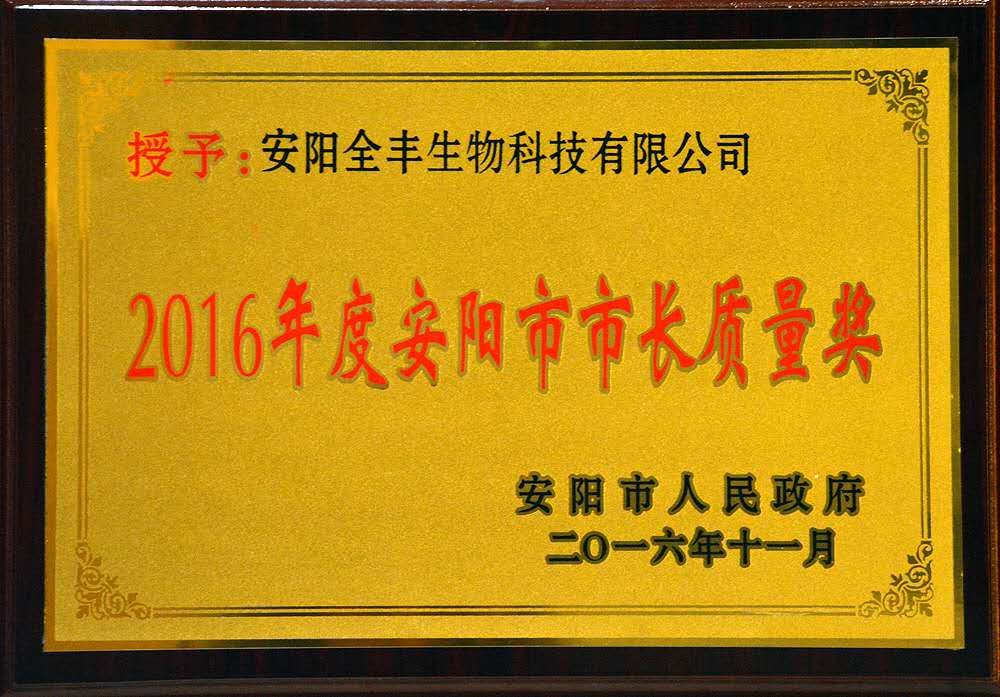 安陽全豐生物科技有限公司喜獲“安陽市市長質(zhì)量獎”