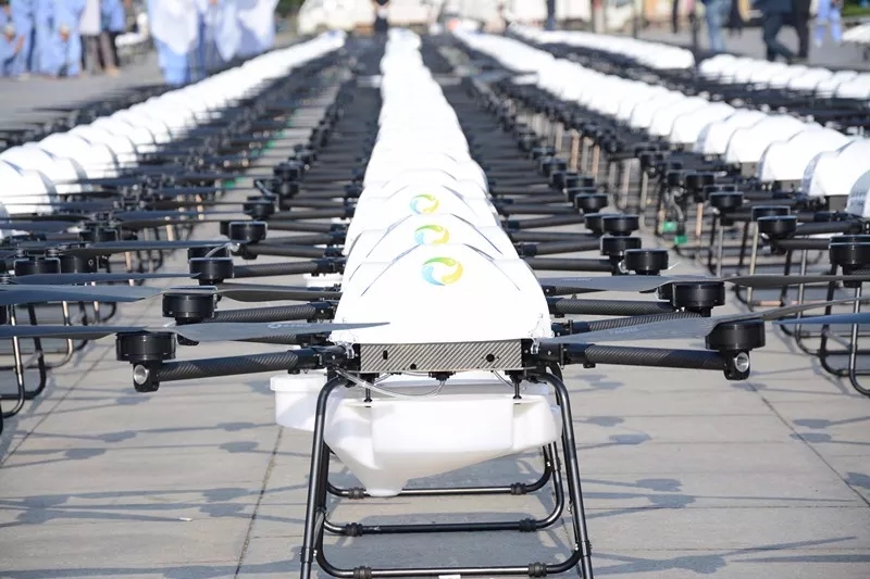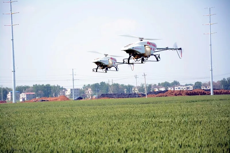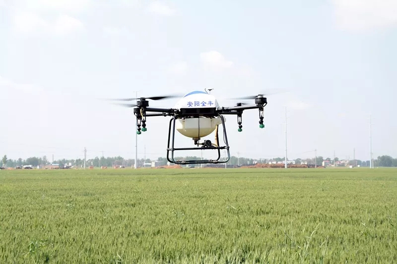 隨后,一行人來到作業(yè)現(xiàn)場,正在進(jìn)行飛防作業(yè)的隊(duì)員們接受領(lǐng)導(dǎo)和專家的檢閱。綠油油的麥田上空,全豐自由鷹和全球鷹同時(shí)起飛,可實(shí)行自主飛行,精準(zhǔn)噴灑,支持遙控器手機(jī)規(guī)劃航線,多種踩點(diǎn)方式!