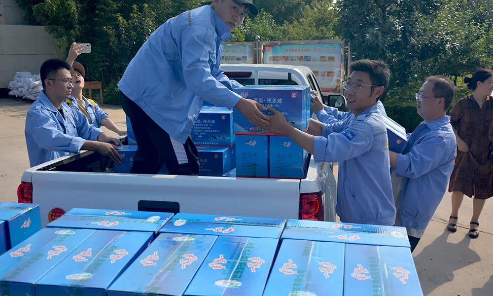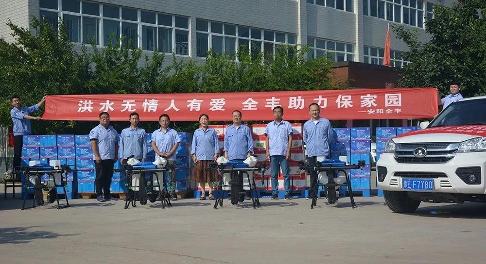 安陽全豐在自身蒙受財(cái)產(chǎn)損失的情況下,不忘企業(yè)使命,勇于承擔(dān)社會(huì)責(zé)任,心系受災(zāi)地區(qū),開展生產(chǎn)自救的同時(shí),公司董事長、總經(jīng)理王志國第一時(shí)間帶領(lǐng)員工積極籌措物資,緊急行動(dòng)起來,聯(lián)系湯陰縣、安陽縣、北關(guān)區(qū)、文峰區(qū)當(dāng)?shù)丶t十字會(huì),向受災(zāi)嚴(yán)重地區(qū)捐贈(zèng)施必達(dá)、金處方、S誘抗素、“蚊蠅一夏凈”等物資將近50余萬元,并免費(fèi)提供配套的無人機(jī)消殺服務(wù)