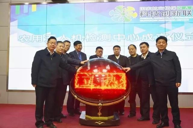 在農(nóng)用無(wú)人機(jī)檢測(cè)中心成立儀式上,陳學(xué)庚、蘭玉彬、董洪巖、王鳳樂(lè)、魏凱、楊林、呂印譜、駱少明等領(lǐng)導(dǎo)共同參與項(xiàng)目啟動(dòng)儀式。