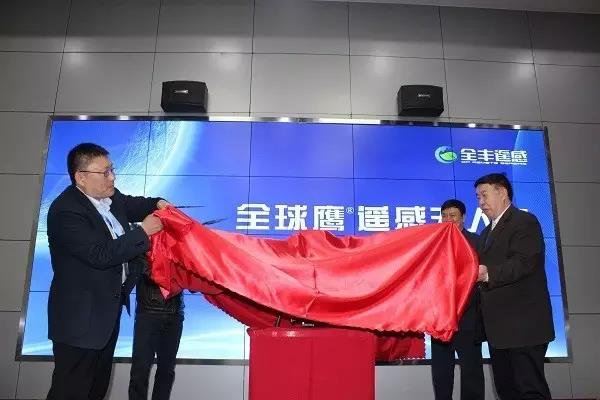 由陳學(xué)庚院士、蘭玉彬教授,王志國(guó)董事長(zhǎng)、黃文江研究員共同為全球鷹遙感無(wú)人機(jī)揭幕。