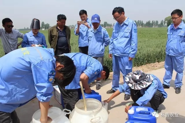 藥劑督察組是流動的工作狀態(tài),來到第二個作業(yè)點,飛機正在等藥,小組成員們直接下地勘察病情,烈日下,大家沒有一個人叫苦叫累。一番調查之后發(fā)現(xiàn)這里的小麥病情較輕,但是也有條銹病和赤霉病的發(fā)生。當老鄉(xiāng)把水和藥品拉到作業(yè)現(xiàn)場,督察組嚴格按照作業(yè)標準監(jiān)督作業(yè)小組配藥,并對作業(yè)過程中不標準的地方提出指導,督察小組的意義是不能因為一味的追求作業(yè)效率而忽略質量,工作就是相鋪相成的。