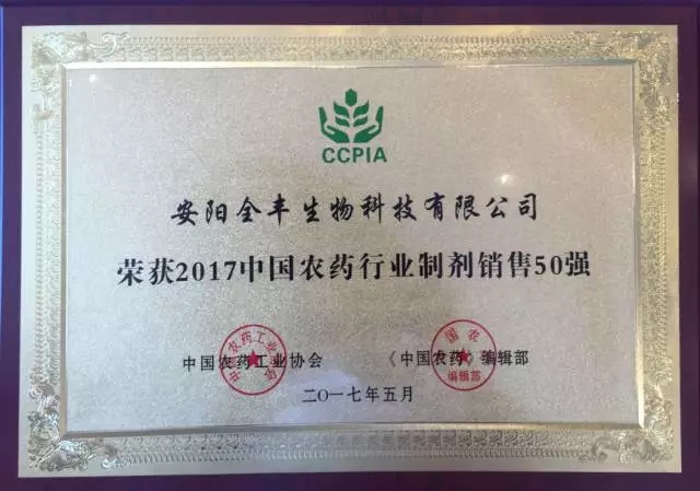 2017年5月10日上午,在江蘇南京召開(kāi)的第四屆農(nóng)藥行業(yè)經(jīng)濟(jì)運(yùn)行分析會(huì)暨農(nóng)藥行業(yè)排行榜發(fā)布會(huì)上,中國(guó)農(nóng)藥工業(yè)協(xié)會(huì)隆重發(fā)布了2017中國(guó)農(nóng)藥行業(yè)制劑銷(xiāo)售50強(qiáng)榜單