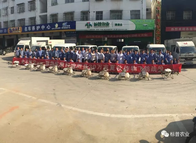 此次飛防是繼安陽百萬畝統(tǒng)防統(tǒng)治后的又一大規(guī)模作業(yè)。為了順利完成任務,8月15日,標普農業(yè)總部飛防大隊和全國各地標普分公司飛防隊出動全豐植保無人機120余架,飛手及助手等近300人奔赴泗縣,要和病蟲害打一場徹底的殲滅戰(zhàn)。