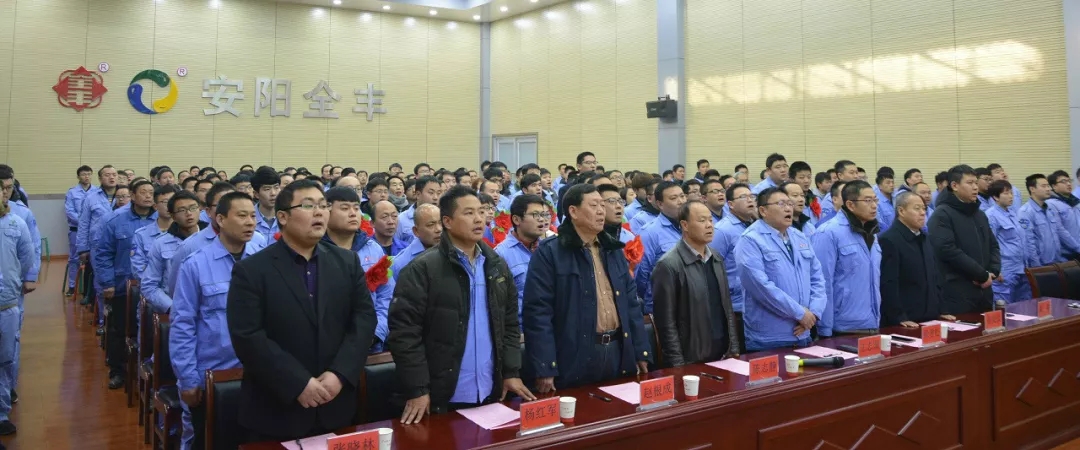 冬日的暖陽照在全豐干凈整潔的道路上,自信歡樂的笑容洋溢在全豐人的臉上。2018年2月9日上午八點半,伴隨著《全豐之歌》的齊聲高唱,全豐公司2017年度總結(jié)表彰暨聯(lián)歡會隆重召開。公司董事長、總經(jīng)理王志國及其他董事會、監(jiān)事會成員,各分公司、部門負(fù)責(zé)人以及員工代表參加了會議。